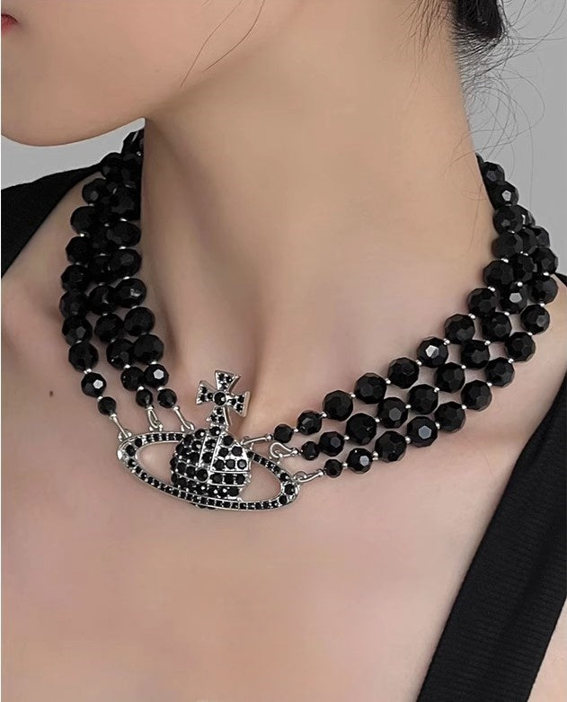 Magnetite Saturn Water Diamond Collarbone Necklace