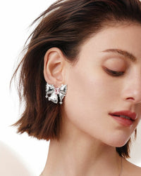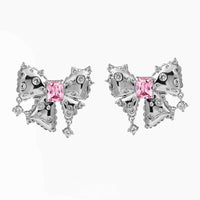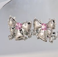 Sweet and Elegant Pink Zircon Butterfly Knot Earrings
