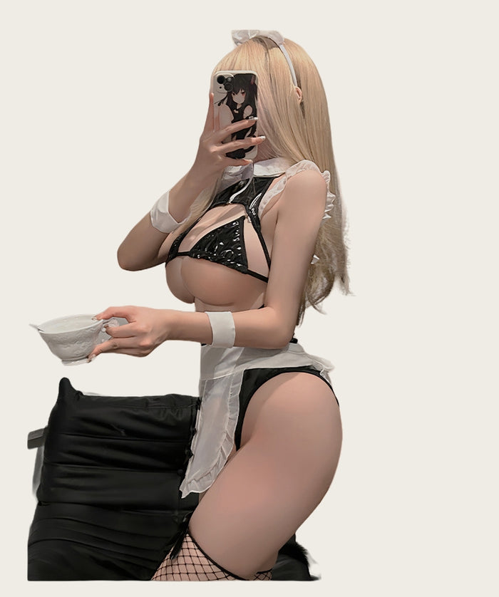 French Pure Desire Polka Dot Sexy Nightgown (2-Piece Set)