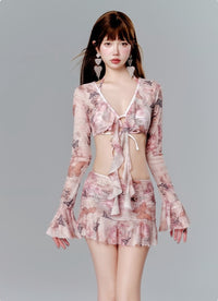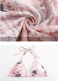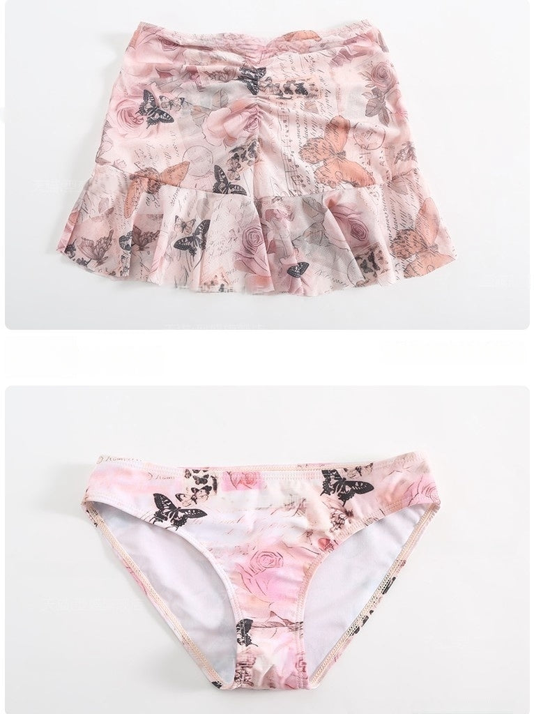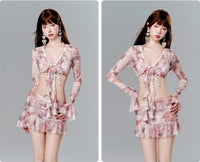 Includes a bikini set, sun-protective cover-up, and matching skirt for versatile styling. The built-in padded cups ensure a secure fit, even for smaller busts, while the halter straps provide excellent lift and support. The wrap skirt elegantly conceals the thighs while elongating the legs for a flattering look.