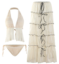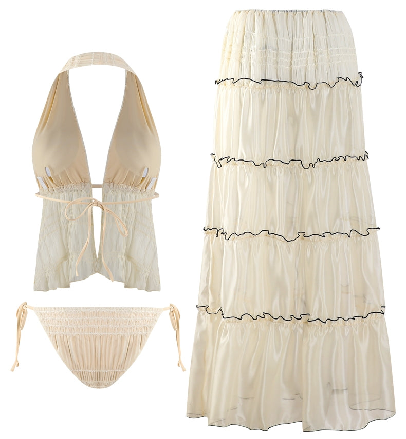 纯欲风自带光泽微透3件套泳衣/沙滩裙