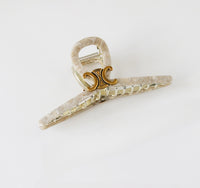 Featuring an amber-patterned texture for a refined look, this oversized hair clip pairs effortlessly with any hairstyle for an elevated, elegant touch. Its enlarged design ensures a secure grip that won’t slip, while the vintage logo lettering adds a subtle, stylish detail to complete the look.