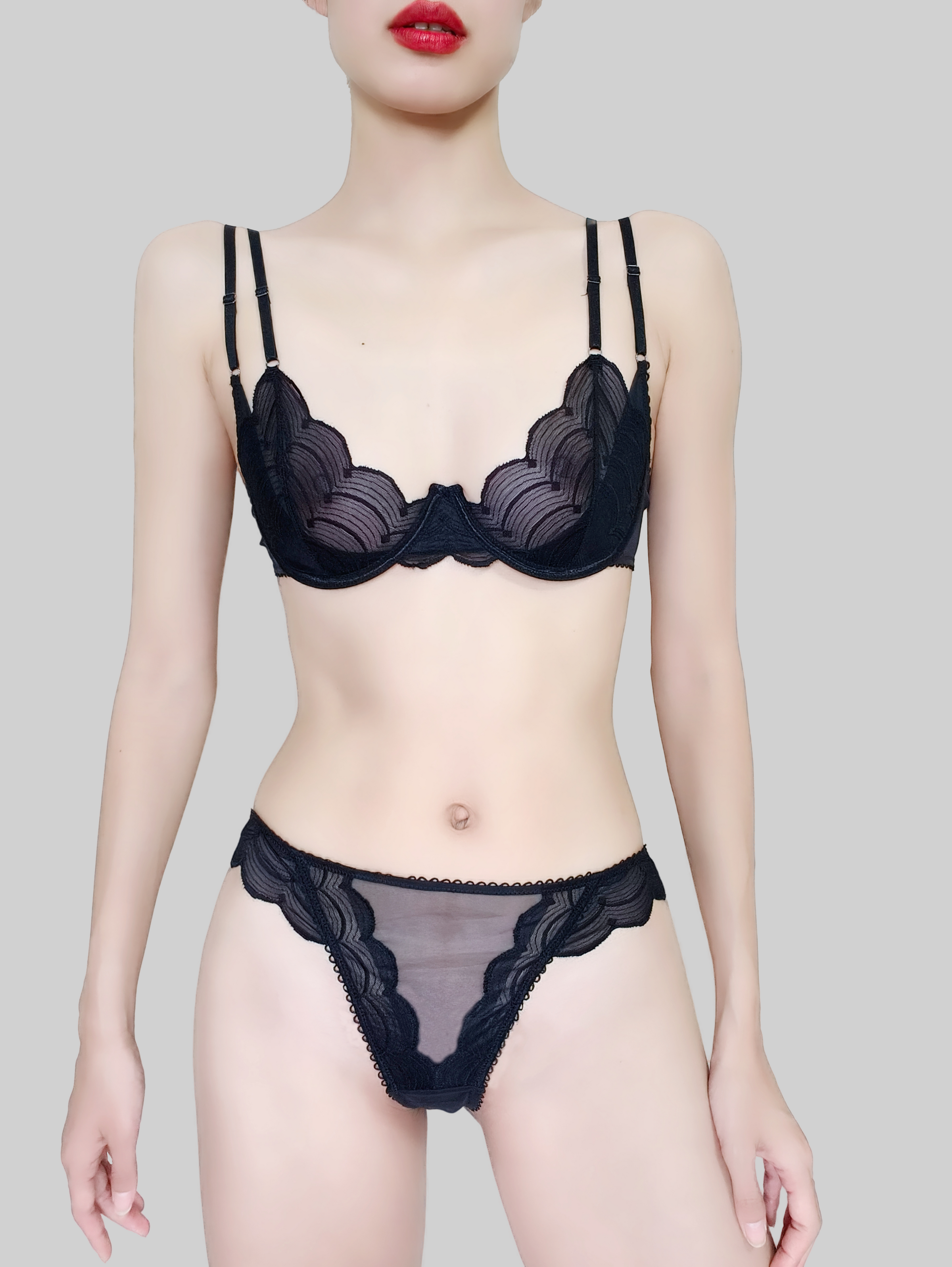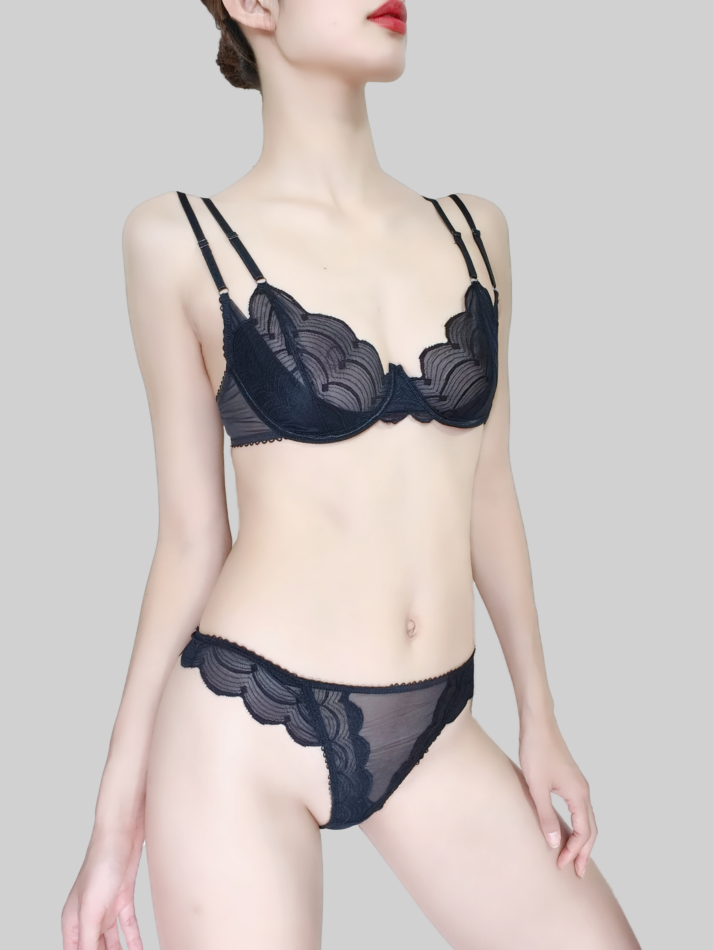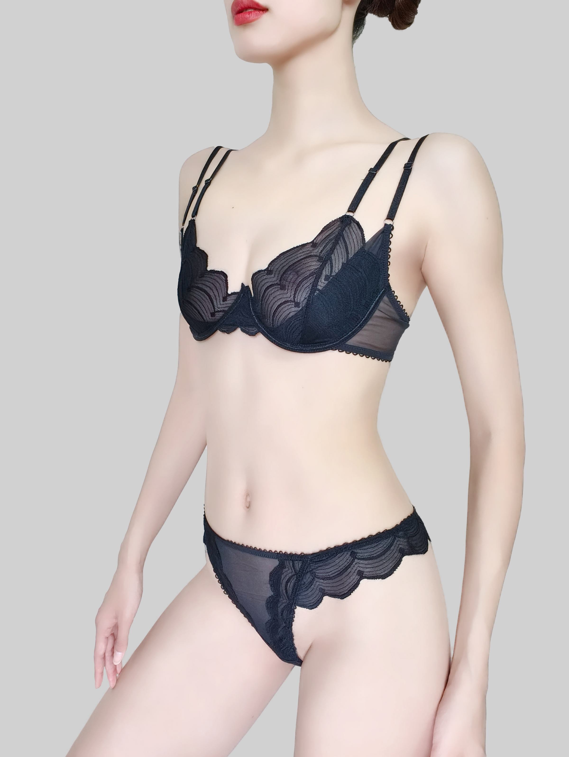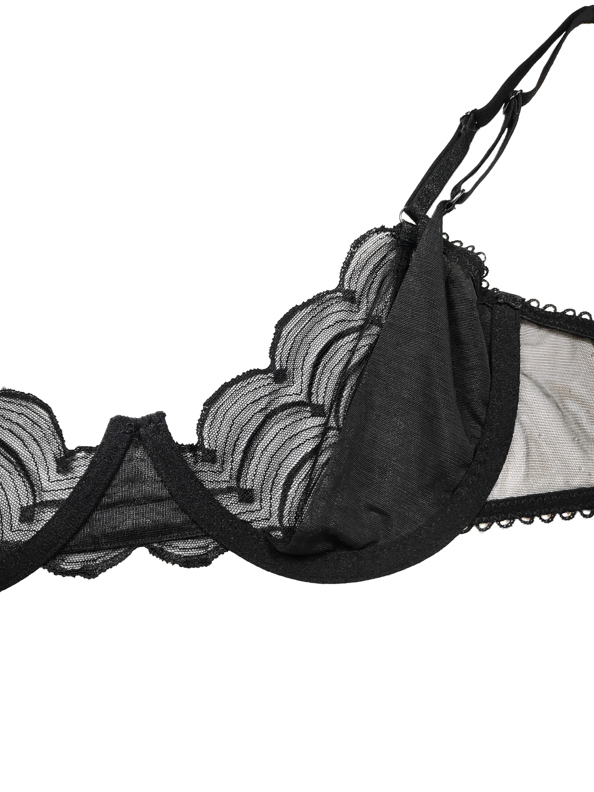 体验我们带有波浪形罩杯的超薄网状文胸,旨在提供精致和支撑。它由半透明网眼织物制成,提供微妙的半透明感,但不会强调突出物。弹性双肩带不仅提供额外支撑,还有助于通过轻柔的俯卧撑效果增强您的胸型。有了这款文胸,您只需一秒钟即可轻松获得更丰满、蜜桃般的胸型。