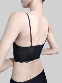 背部和下胸区域精致的蕾丝细节增添透气亲肤的效果,散发出微妙的诱惑魅力。